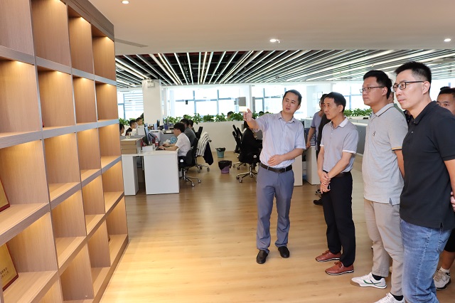 在鮑總的陪同下,蕪湖市弋江區(qū)領(lǐng)導(dǎo)及企業(yè)家一行參觀了公司的辦公區(qū)及各功能區(qū),對我司的辦公環(huán)境、文化建設(shè)等方面進(jìn)行了全面的了解。