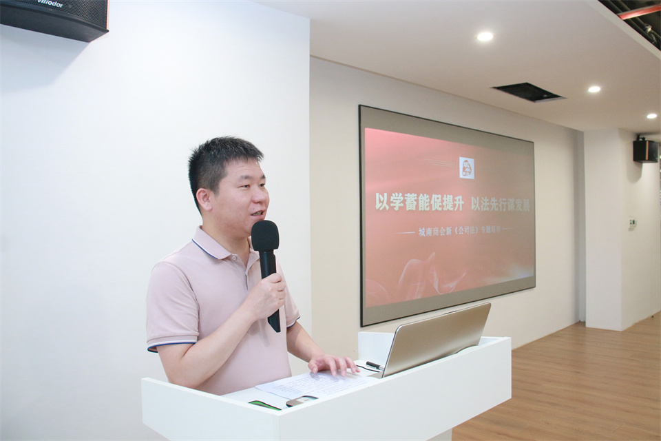 為深入學習新《公司法》修訂的基本精神和重要內容,幫助會員企業(yè)培養(yǎng)法治思維、提升合規(guī)經(jīng)營管理水平,提高法律風險防范能力。6月25日下午,嘉興市城南商會在我司舉辦“以學蓄能促提升、以法先行謀發(fā)展”新《公司法》專題培訓,會長張文芳等80多位企業(yè)家及會員代表蒞臨我司參加活動,城南街道黨委委員周翟出席活動并致辭。